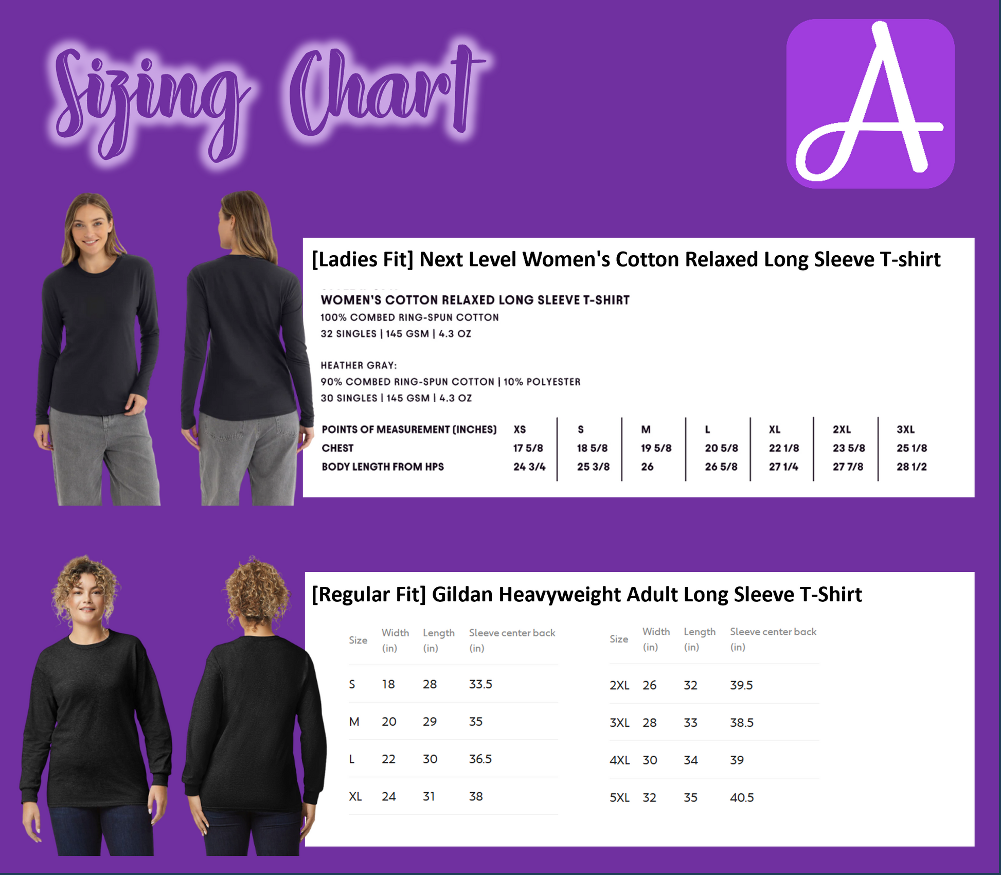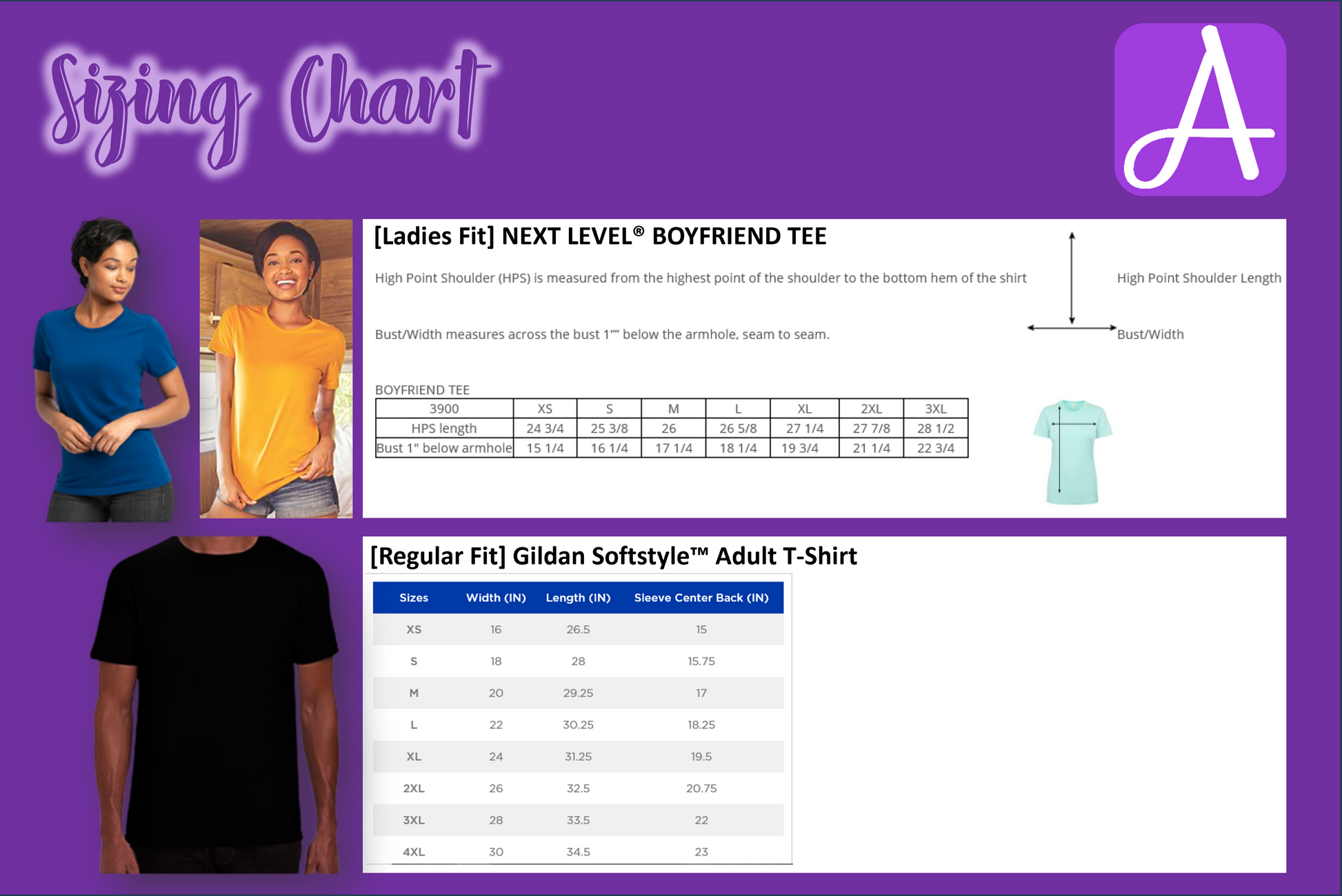 **PLEASE REVIEW SIZING CHART IMAGES TO DETERMINE SHIRT SIZE PRIOR TO ORDERING. NO REFUNDS OR EXCHANGES WILL BE GIVEN FOR INCORRECT SIZES**